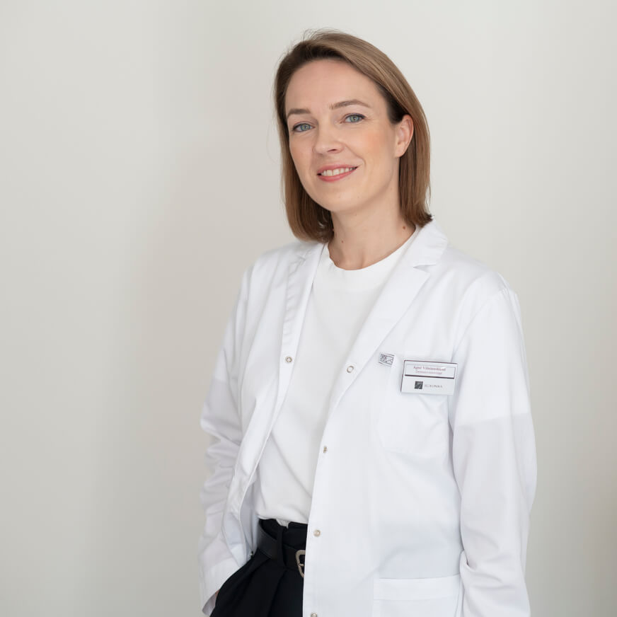 Gydytoja dermatovenerologė Agnė Višniauskienė konsultuoja dėl įvairių odos ligų, atlieka išsamų odos būklės vertinimą ir skiria individualų gydymo planą, atsižvelgdama į paciento poreikius. Gydytoja specializuojasi uždegiminių odos ligų gydyme, odos darinių, pigmentinių dėmių, kapiliarų šalinime lazeriniu būdu, estetinėje medicinoje.